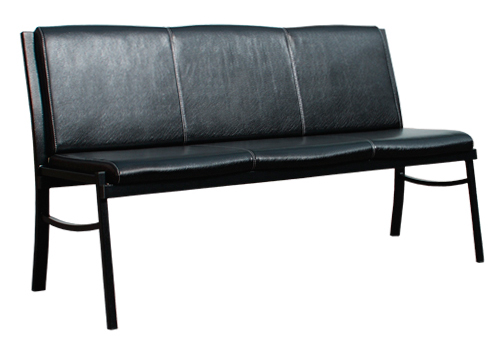Каркас выполнен из тонкостенной профильной трубы. Окрашен защитно-декоративным полимерно-порошковым покрытием. Каркас имеет две цельносварные боковины, изготовленные из профиля 40х25х1.5 мм (задняя ножка-спинка), 25х25х1.2 мм (передняя ножка) соединенные двумя перемычками из профиля 25х25х1.2 мм и 20х20х1.2 мм. Боковины соединены между собой двумя перемычками из профиля 40х25х1.5 мм с помощью винтов М6х15 мм и спинка укреплена перемычкой 20х20х1.2 мм. Трубы каркаса заглушены защитно-декоративными пробками ПВХ. Полумягкие сиденье и спинка дивана выполнены из ДСП толщиной 16 мм, обтянуты поролоном толщиной 40 мм и обшиты мебельным кожзаменителем. Обратные стороны полумягких частей обиты нетканым материалом (спанбондом). Сиденье и спинка скрепляются с каркасом саморезами Ø4х16 мм. Допустимая нагрузка 120 кг.