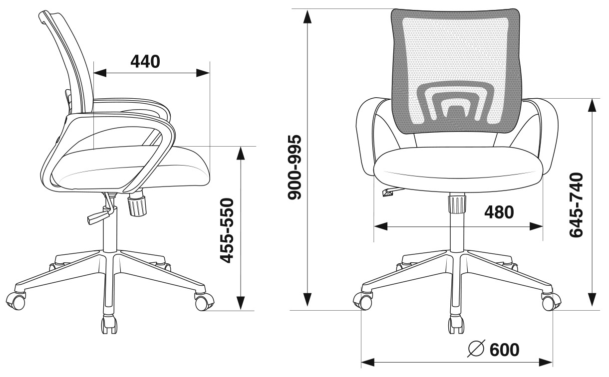 Материал обивки: cпинка – сетка, сиденье – ткань.
