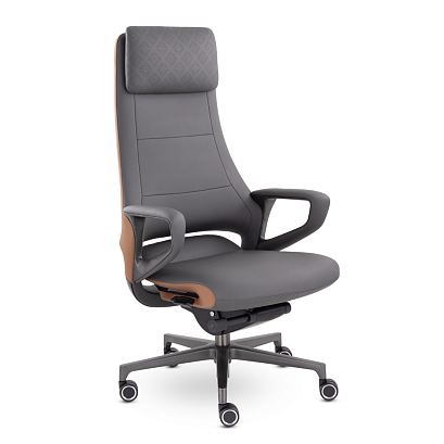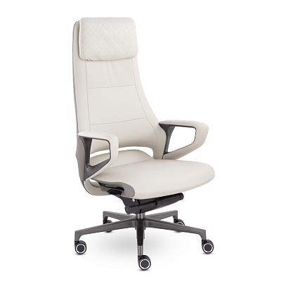 Современное кресло руководителя. Регулируемый подголовник имеет увеличенную мягкую подушку с уникальным рисунком. Механизм качания позволяет фиксировать наклон кресла в любом положении, что обеспечит полный комфорт и расслабление во время рабочего дня.