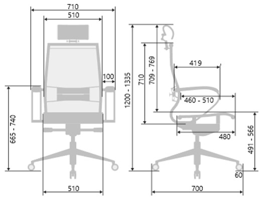 Каркас стальной хромированный, ширина 510 мм, высота 710 мм.