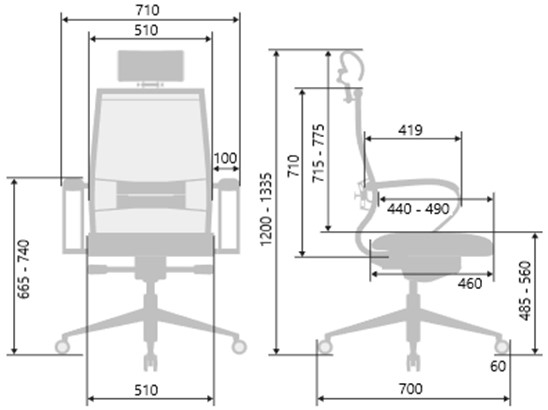 Регулируемая 3D поясничная поддержка (РПП): каркас стальной пластинчатый с полимерным покрытием черного цвета и хромированным молдингом. Подвижная часть РПП стальная хромированная, ремни из искусственной кожи Extra. Регулировка по глубине, высоте и жесткости.