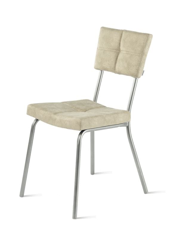 Металлический каркас стула изготовлен из круглой трубы диаметром 22 мм с толщиной стенки 1.0 мм; окрашен защитно-декоративным покрытием. Концы ножек стула закрыты пластиковыми заглушками. Спинка стула изготовлена из ДСП толщиной 16 мм, сиденье стула изготовлено из ФГК 9 мм; обтянуты поролоном с толщинами 40 мм и 10 мм и мебельным текстилем различных цветов. Форма сиденья и спинки способствует сохранению осанки.