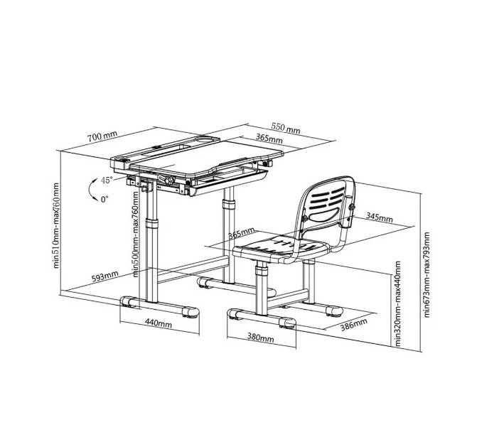 Детский комплект Cubby Vanda - выполнен в современном и красочном дизайне. Благодаря растущему механизму данной модели, комплект подходит как ребенку 4 лет, так и школьнику. Комплект эргономичный и безопасный для детей благодаря скругленным краям, а его механизмы настроек высоты и наклона насколько просты, что с ним справится даже ребенок. Стандартная комплектация комплекта Cubby Vanda включает в себя множество практичных вспомогательных средств, помогающих организовать работу. Имеется выдвижной ящик для канцелярии и детских тетрадей, крючок для портфеля, а просторная столешница размером 700x550mm может выполнять функцию мольберта, её легко поднять до уровня 45 градусов.