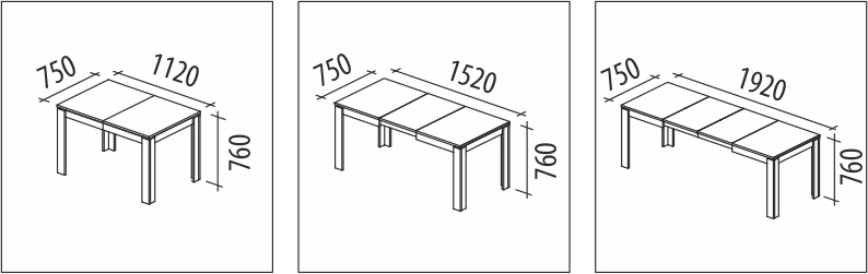 • увеличение столешницы на 40 см и 80 см за счет раздвижного механизма;